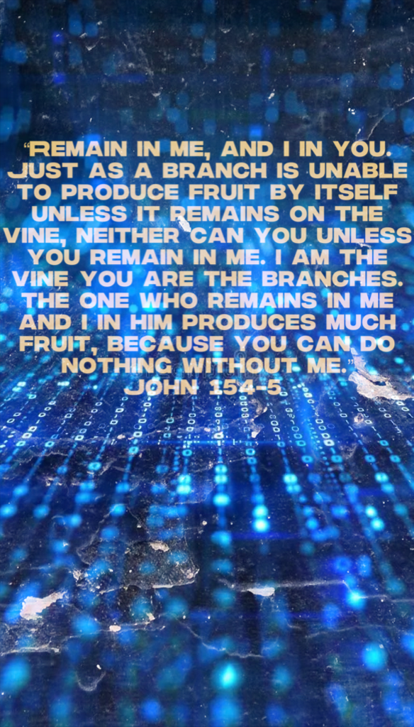 “Every branch in me that does not produce fruit he removes, and he prunes every branch that produces fruit so that it will produce more fruit. You are already clean because of the word I have spoken to you. Remain in me, and I in you. Just as a branch is unable to produce fruit by itself unless it remains on the vine, neither can you unless you remain in me. I am the vine; you are the branches. The one who remains in me and I in him produces much fruit, because you can do nothing without me.” – John 15:2-5